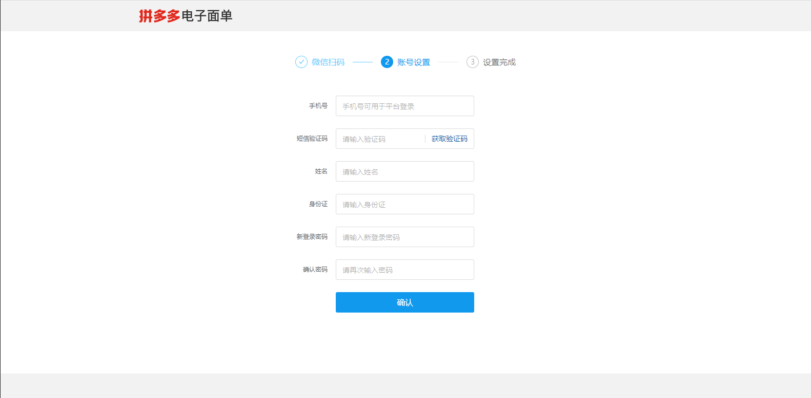 您可以直接通過拼多多店鋪登錄來開通、使用電子面單。如果您的拼多多店鋪已經在站內開通了電子面單,那么對應的賬戶數據也將進行同步,可以直接使用。